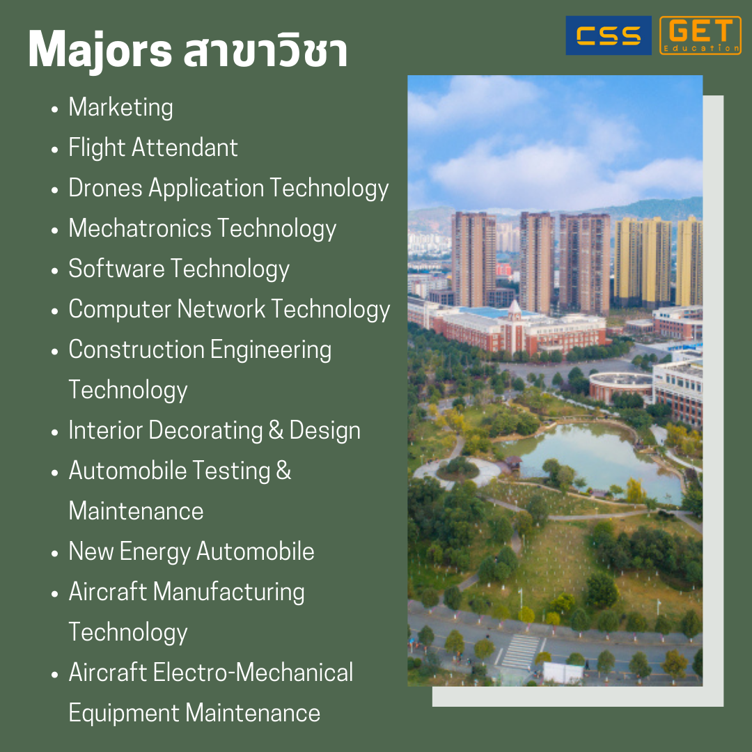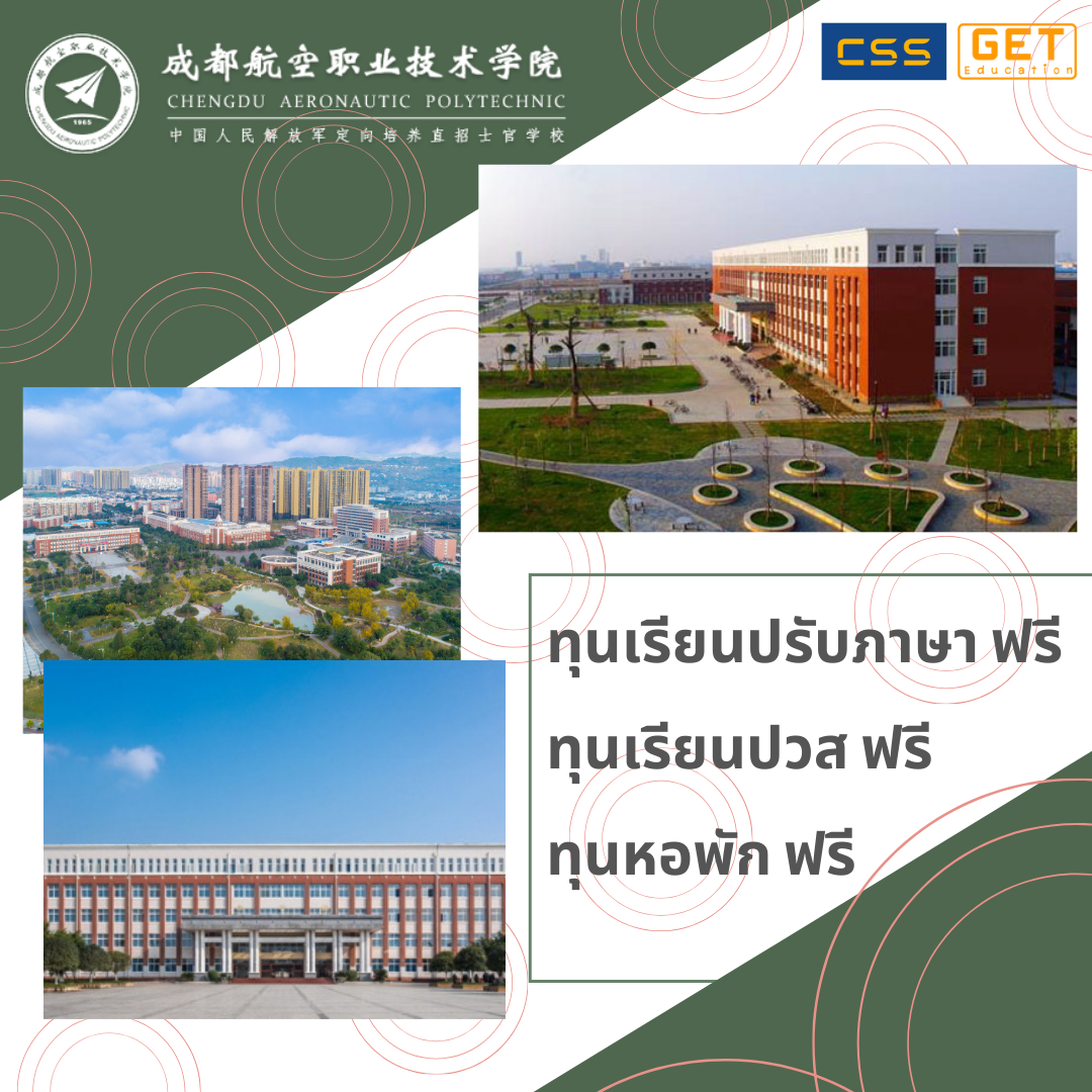 Chengdu Aeronautical Polytechnic 成都航空职业技术学院 ก่อตั้งขึ้นในปี 2508 โดยกระทรวงอุตสาหกรรมเครื่องจักร เพื่อตอบสนองความต้องการของการก่อสร้างอุตสาหกรรมการบินในประเทศ ซึ่งเดิมเรียกว่า “Desheng Intermediate Technical School ปัจจุบัน โรงเรียนได้เปลี่ยนชื่อเป็น “โรงเรียนอุตสาหกรรมการบินเฉิงตู”