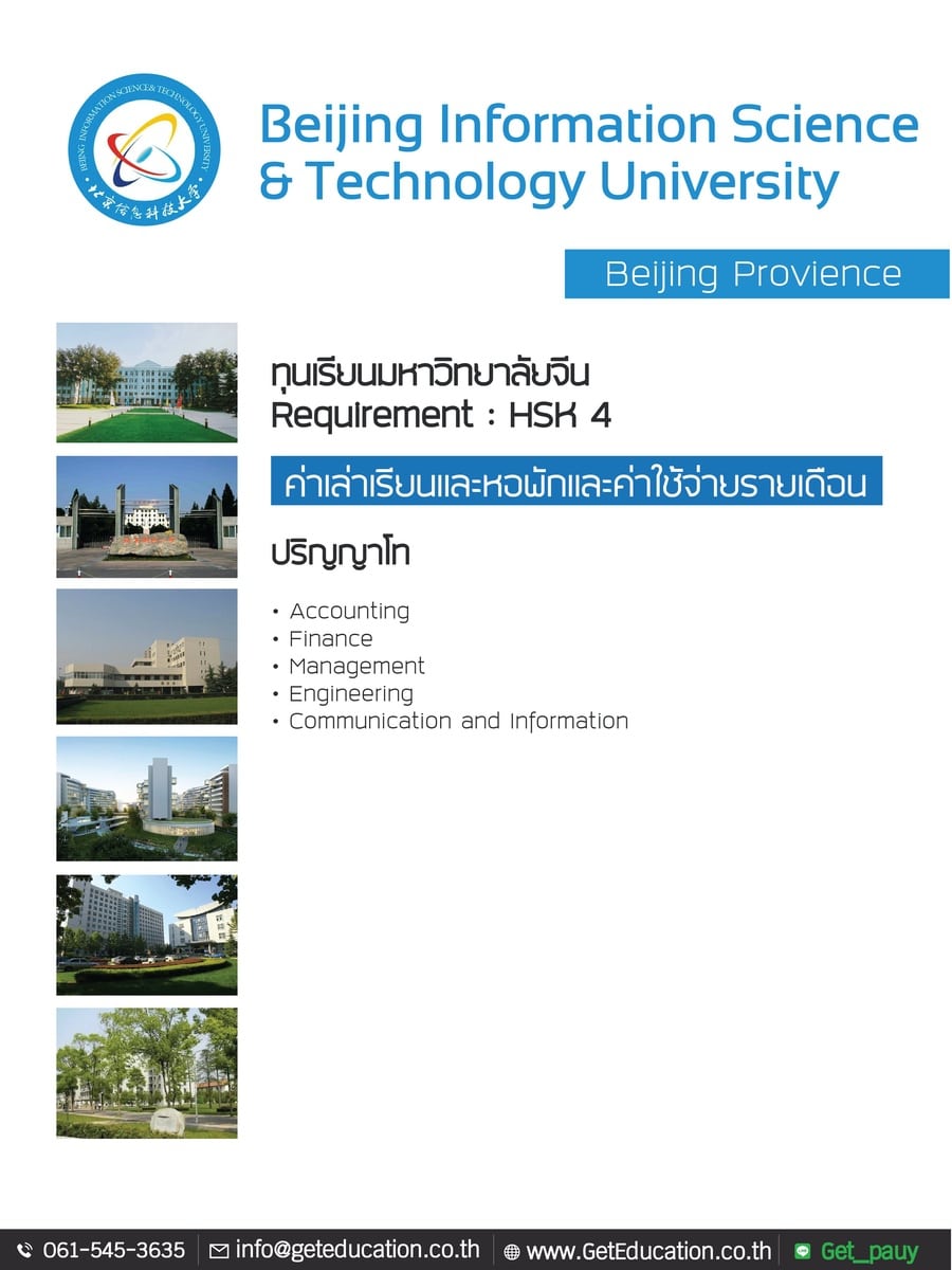 Beijing Information Science and Technology University ก่อตั้งขึ้นโดยการรวมกิจการของสถาบันเครื่องจักรอุตสาหกรรมปักกิ่ง ในอดีตกระทรวงเครื่องจักรและสถาบันเทคโนโลยีสารสนเทศปักกิ่งภายใต้อดีตกระทรวงอิเล็กทรอนิกส์ ปัจจุบันโรงเรียนมีวิทยาเขต 5 แห่งและวิทยาเขต Shahe แห่งใหม่ซึ่งครอบคลุมพื้นที่มากกว่า 1,200 mu ได้เริ่มก่อสร้างอย่างสมบูรณ์และเฟสแรกของโครงการจะแล้วเสร็จในปี 2563