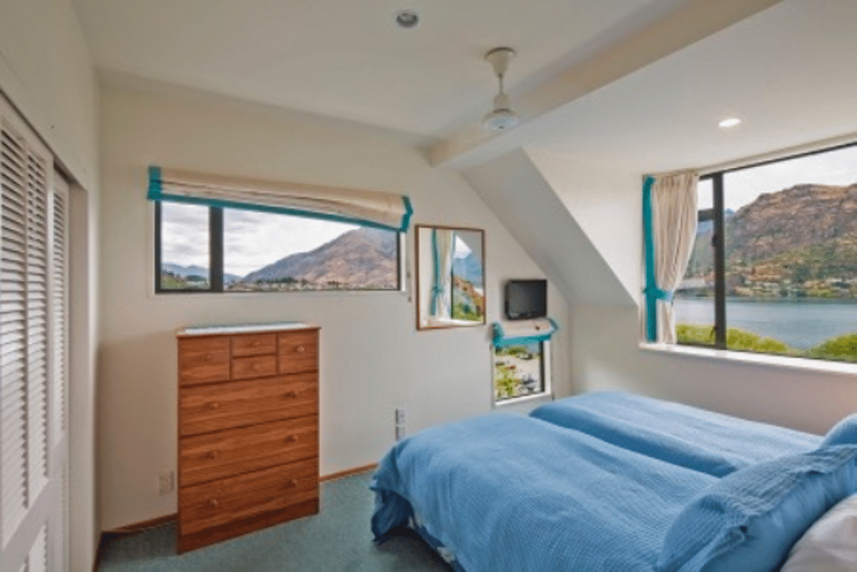 ระเบียงนั่งเล่นเห็นวิวภูเขาของเมืองควีนส์ทาวน์